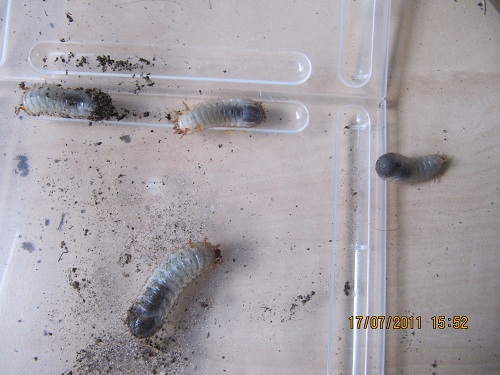 Ik heb net heel me grote keverbak uitgepluist en ben redelijk veel L2 larve 2 a 3 L3 larve en 1 L1 larve tegengekomen, nu heb ik ze in kleine bakjes met versnippert blad en wat bosgrond-cocopeatgrond waar ze inzaten gedaan.
