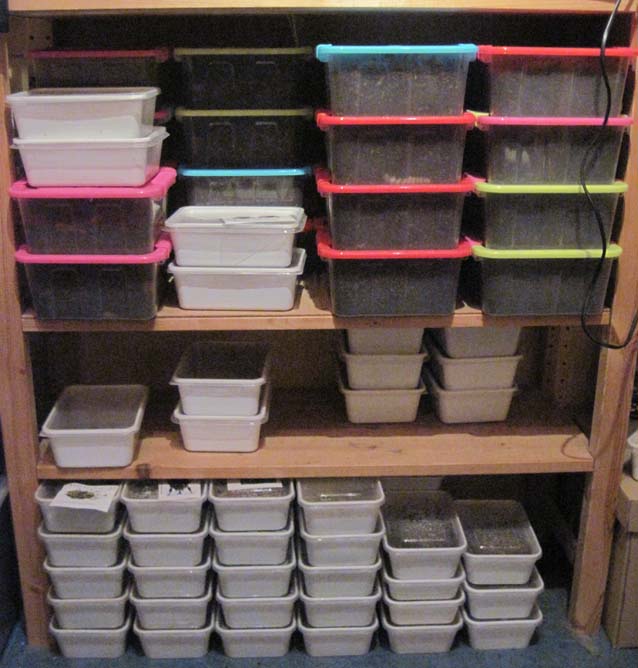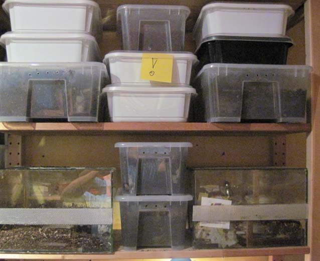 de groten bakken staan in de huiskamer deze zijn voor de kevers.