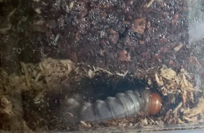Ik heb er zo snel maar 1 gezien maar de bak is groot dus er zullen er ongetwijfeld meer in zitten. De imago's zijn in februari pas het terrarium in gegaan. Stond echt te kijken van het formaat dat de larf nu al heeft gezien hij pas vanaf februari als eitje gelegd kan zijn.