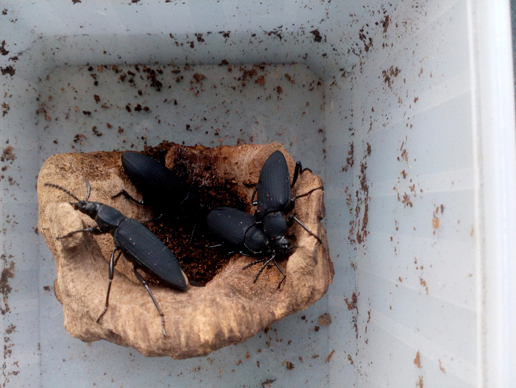 Sinds een paar maanden heb ik deze vier kevers in een terrarium. De kevers zijn in huis aangetroffen (