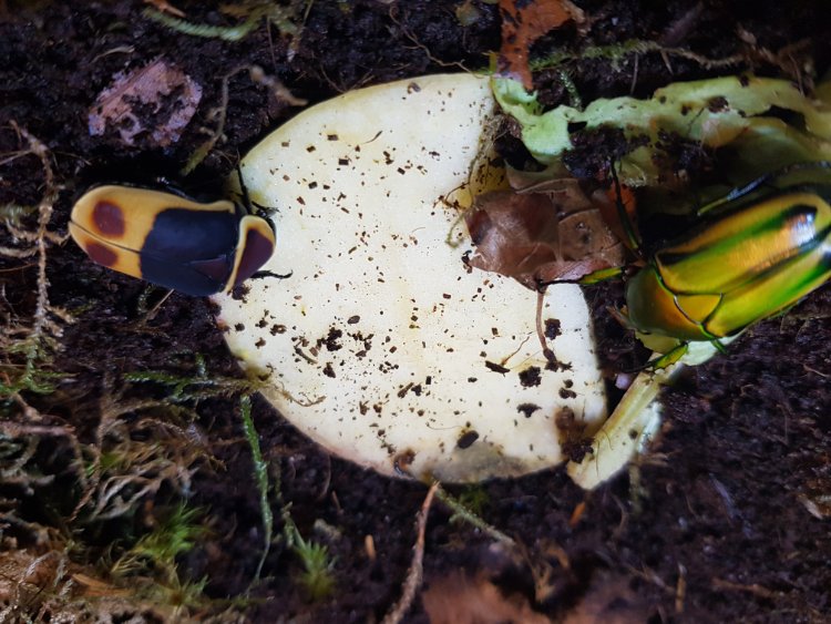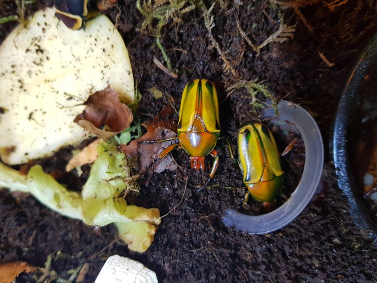 Nee geen eudicella. Als ik er 1 tegenkom dan maak ik een foto. Het zijn echt dikke griezels en zwaar. Van de zomer mijn bak leeghalen en de soorten allemaal een eigen bak geven.