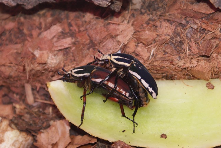 Afgezien van de Pachnoda marginata peregrina en Cyprolais hornimani waarvan ik de hele cyclus al rond ben geweest, is dit mijn eerste poging van een wat grotere soort. Begonnen met L2 larven van Arietuur, tijdens de ontwikkeling enkele larven en coconnen verspeelt (waarschijnlijk te vochtig substraat, maar daar leren we van..). Nu 10+ geweldige imago's, meer mannen als vrouwen maar in hun meter terrarium lijken ze elkaar genoeg te kunnen ontlopen, anders gaan er wat mannen naar een ander terrarium.