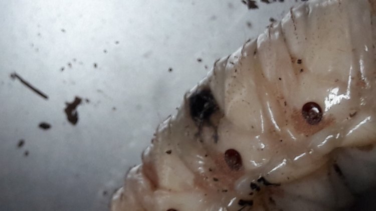 Met nieuwe larven heb ik wat raars meegemaakt. De meesten hadden een paar zwarte vlekjes, maar niet veel.