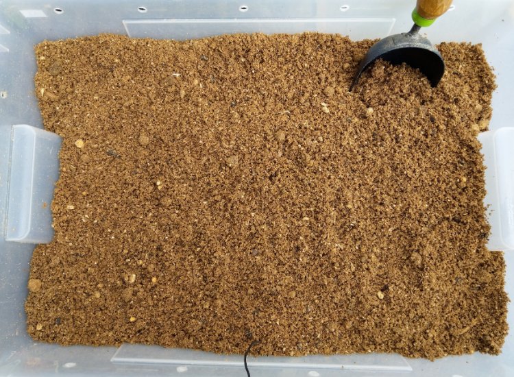 Mooi altijd om te zien, dat proces van verkleuren. Doe je het niet direct in je compost machine?Pim schreef: zo 12 apr 2020, 23:36 Vandaag weer een nieuwe bak klaargemaakt met mengsel voor flake soil. Ter vergelijking nu een paar opnamen. Eerst het droge mengsel van zaagsel en zemelen, dan het mengsel met frass en bloem erbij en het mengsel als het vochtig gemaakt is. Als laatste mengsel dat al een week staat te composteren. Het zijn 65 liter bakken, dus ik denk dat er ongeveer 50 liter mengsel in de bak zit.
