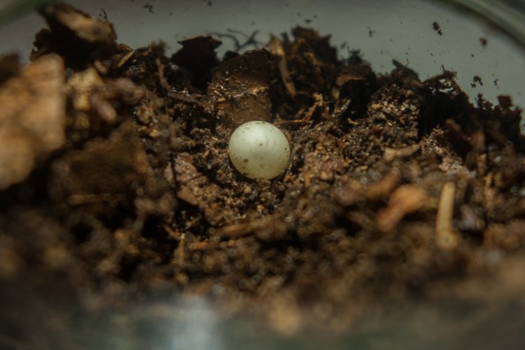 Ik heb het substraat echt heel erg goed nagekeken, geen spoor van een larf of ei. Heb er van de week wel wat meer grotere stukken blad bij gedaan na het inspecteren, misschien vind ze dat fijner dan het lossere substraat wat ze nu heeft. En anders heb ik pech, en dat is niet echt erg want dan heb ik nog steeds heel leuk stelletje om naar te kijken.