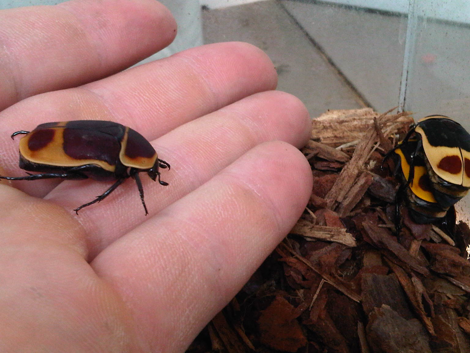 hier 2 overleden Stephanorrhina guttata en hun larve nog een paar Pachnoda marginata peregina