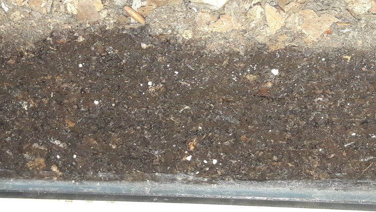 Larven zitten op 60% humus 30% FS en 10% wit rot hout.