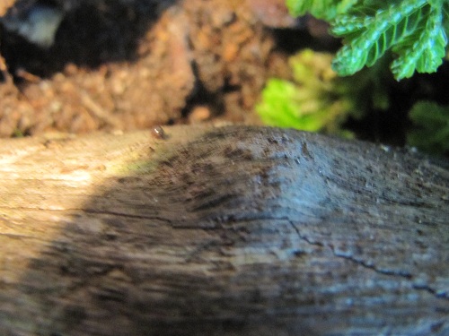 eergister trof ik deze diertjes aan in het terrarium, ik zag er een stuk of 3 zitten omdat ze een beetje glommen onder de lamp. Ik zie ze enkel op het hout zitten,