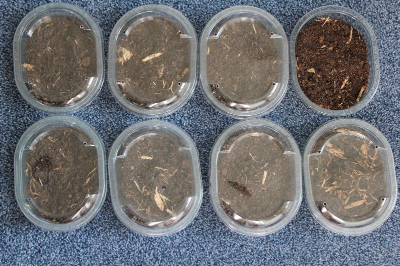 in elk bakje zit 1 larf dus in totaal al 8 larven