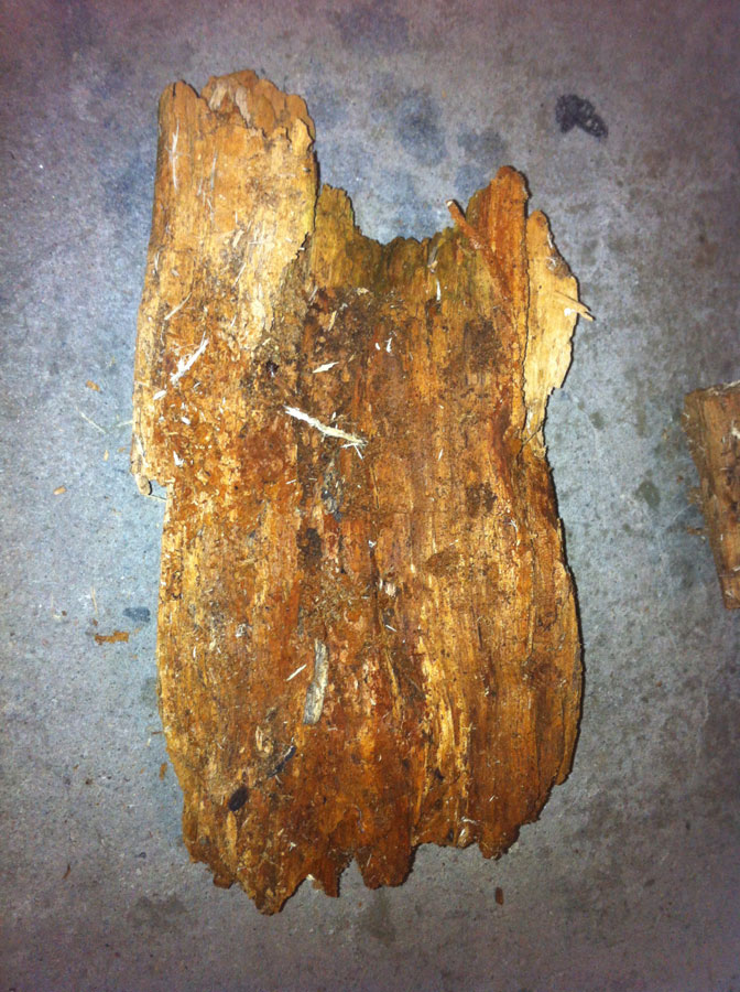 Volgens mij is het niet geelrothout, maar roodrothout, wat geen voedingsstoffen voor de larven meer in zitten. Vaak kan je het ook aan de structuur zien, bij het rode hout zie je meer blokken en bij het witte hout repen. Helpt je dat iets?