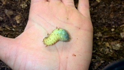 Hierbij een foto van hoe room geel de larf van een Cetonia aurata wel niet kan worden. Op de foto is hij zelfs iets fletser dan irl. Ik verwacht dat deze ook zeer spoedig een cocon gaat bouwen.