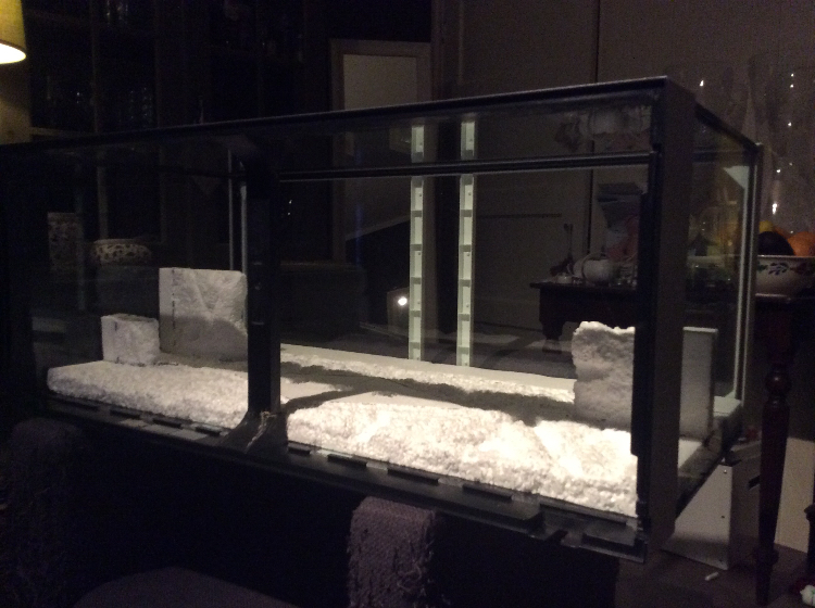 Dat van die parketlak met zand had ik al gelezen. Maar ik wil graag de hele achterwand donker spuiten met een plantenspuit gevuld met water en verf. Daarna wou ik de naar voren liggende delen lichter maken voor een mooi effect en op de plateautjes wou ik wat zand strooien voor extra grip. Op YouTube staan wel mooie filmpjes met mooie effecten.
