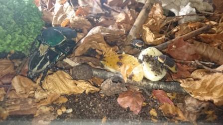 Yeah! Gefeliciteerd! Het blijft altijd een feest om eitjes of larfjes terug te vinden. De eerste keer is al helemaal bijzonder. Ik neem aan dat de larfjes van de Mecynorhina zijn? Wel oppassen straks wanneer je ze samen laat zitten met de Pachnoda larfjes. Zeker wanneer de Mecynorhina wat groter zullen worden willen ze nog wel eens wat Pachnoda oppeuzelen.