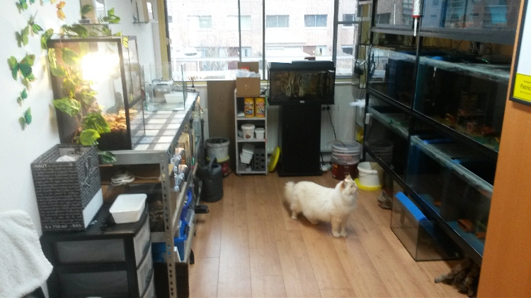 Een muur met een stelling met aquaria en de andere muur voor mijn hobby :mrgreen:
