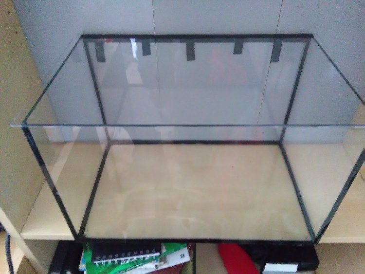 ik heb zoals in mijn voorstel ronde gezegd een aquarium van 40x25x25, alleen zit hier geen deksel op.