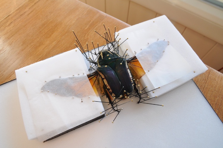 Ook de vleugels even goed vast zetten, want anders gaan ze krullen en scheef staan als ze opdrogen.
