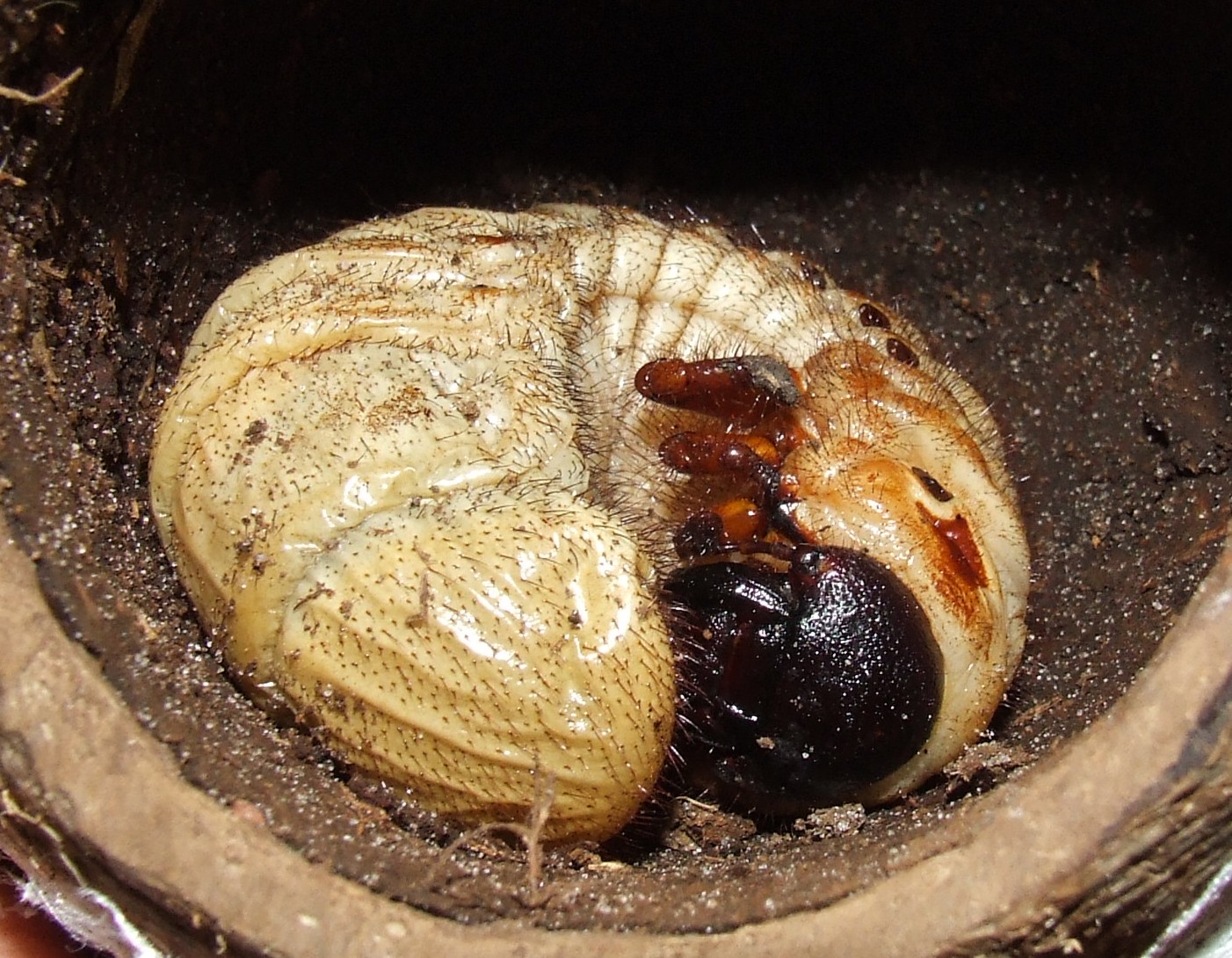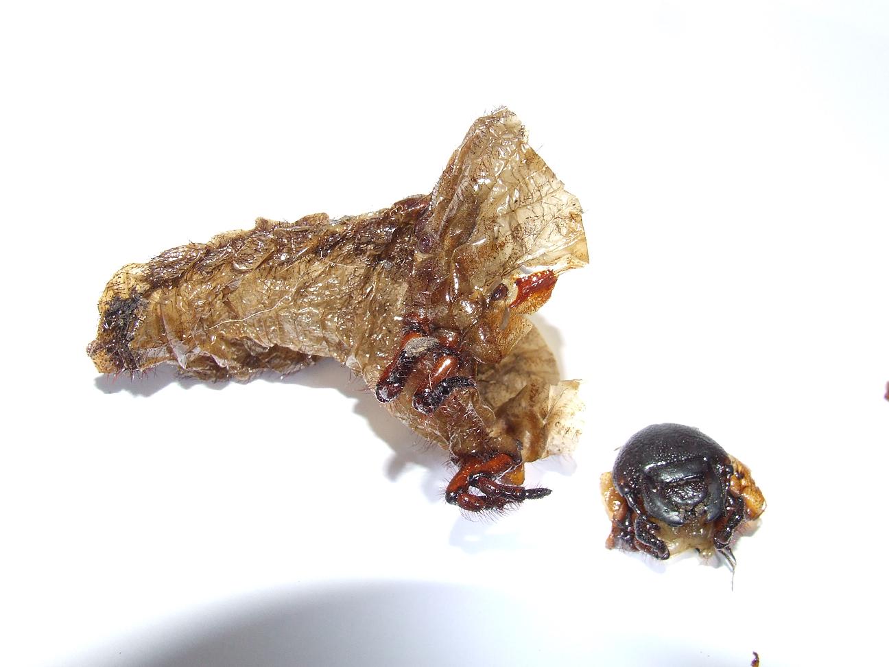 Als de kever na de verpopping uit de pop komt zijn zijn dekschilden nog zacht en wit. Hij moet dan nog enige dagen uitharden en op kleur komen.