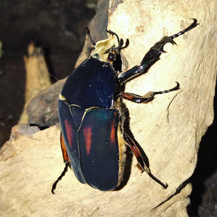 Ik kan haar nog niet helemaal goed bestuderen voorlopig, maar heb al gezien dat ze een beetje dat holografische rood/groen heeft wat je ook bij bijv. Stephanorrhina’s ziet, supermooi! Dit wordt er absoluut eentje die in de kweek gaat