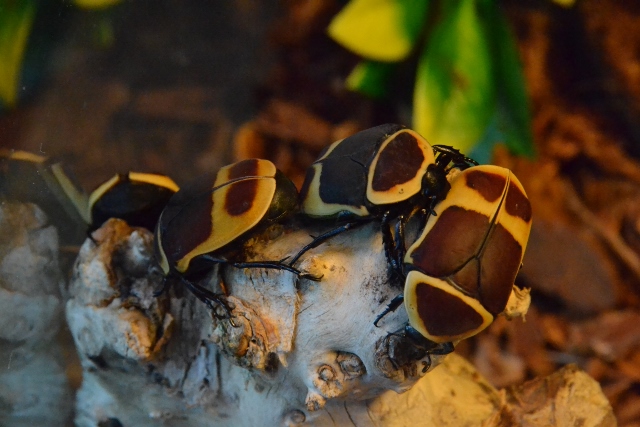Nadat ik in juli 2012 mijn eerste larven had gekocht (waar niets uitgekomen is) mocht ik een half jaar later mezelf toch verblijden met 6 kevers (helaas alle mannetjes). Weer nieuwe larven gekocht en daar heb ik inmiddels het eerste nageslacht van. Een flinke lading eitjes en L1 larvjes :-) Zonder macrolens lukt het me niet om dat mooi in beeld te brengen dus dan maar, naar ik vind, een leuke foto van de papa's en mama's die aan het 'zonnen' zijn :-)