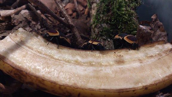 Wat waren ze lekker actief vandaag, terrarium netjes, banaan en jelly gevoerd en ze bunkeren weer als bouwvakkers