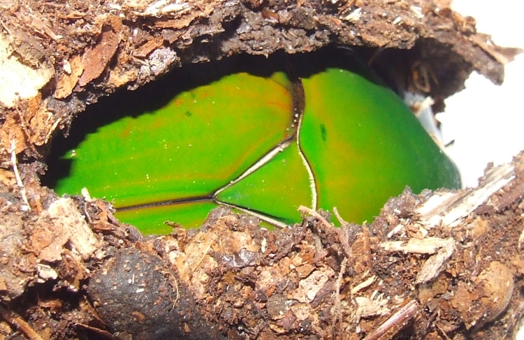 Momenteel liggen er 6 cocons waarvan er 5 imago's en 1 pop in zitten. Ik heb 1 dame gespot hopelijk is de pop ook een dame en schiet ze er beetje op. Dit waren de snelle cyclus larven, ik wist van deze niet wie de man en wie de vrouw was qua kleurstelling. Van de andere larven wel maar deze zijn nog niet aan de cocons toe hoewel sommige larven al over de 30+ gram gaan.