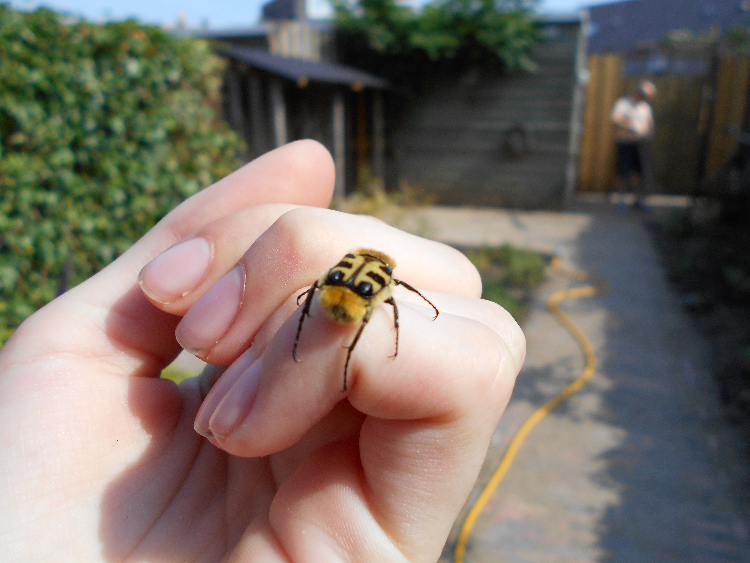 Wat een mooi beest! Ik weet t niet dus heb mijn goede vriend google even geraadpleegd, de bovenste zoekresultaat bij trefwoord hommelkever was meteen raak :lol: Eigenlijk heet ij penseelkever; Trichius fasciatus of trichius zonatus.