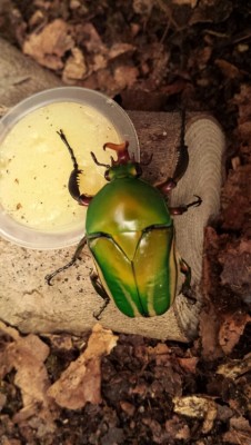 wij hebben 2.2 eudicella schultzeorum (denk eerder E. morgani) gekocht en 10 stuks Smaragdesthes Africana de eudicella zijn echt suuuper mooi groen :D