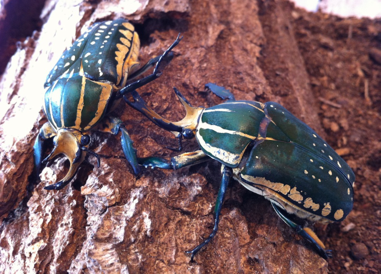 Gister realiseerde ik me dat mijn Mecynorhina polyphemus confluens nog altijd springlevend zijn, en dat terwijl ze begin augustus zijn uitgekomen. Al 7,5 maand leven deze giganten! Ondanks dat ze ongeveer alle poten verloren zijn vochten deze heren gister nog om de laatst overgebleven dame, waarna er nog gepaard werd. Zelfs terwijl ze al voor meer dan 200 larven aan nakweek gezorgd hebben. Ik ben benieuwd hoe lang ze het nog volhouden, maar dat ze voor een recordleeftijd gaan is mij wel duidelijk