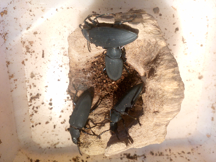 Sinds een paar maanden heb ik deze vier kevers in een terrarium. De kevers zijn in huis aangetroffen (