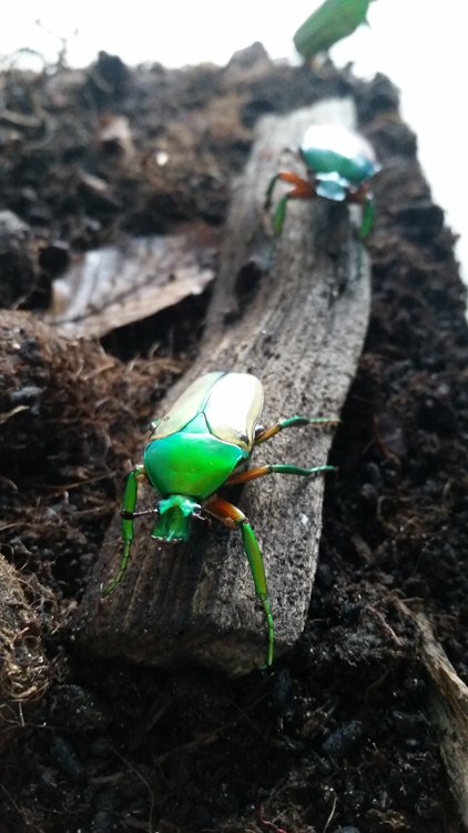 Hoera, eindelijk zijn mijn Cyprolais aurata uitgekomen, het zijn mijn eerste kevers ooit dus ik ben nogal enthausiast
