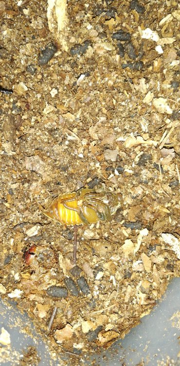 Xylotrupes verpopt vaker bovenop het substraat als er geen geschikte plek gevonden wordt.