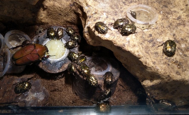 Ik heb helaas slechts twee bruine vrouwtjes van Mecynorhina torquata ugandensis en die moeten ook ergens zitten. Vond ze hier bij wel leuk. Helaas zijn ze niet zo mooi bruin als mij voorgehouden werd toen ik ze kocht.
