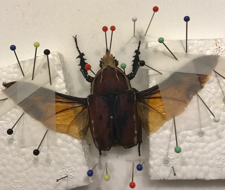 Ook de vleugels even goed vast zetten, want anders gaan ze krullen en scheef staan als ze opdrogen.