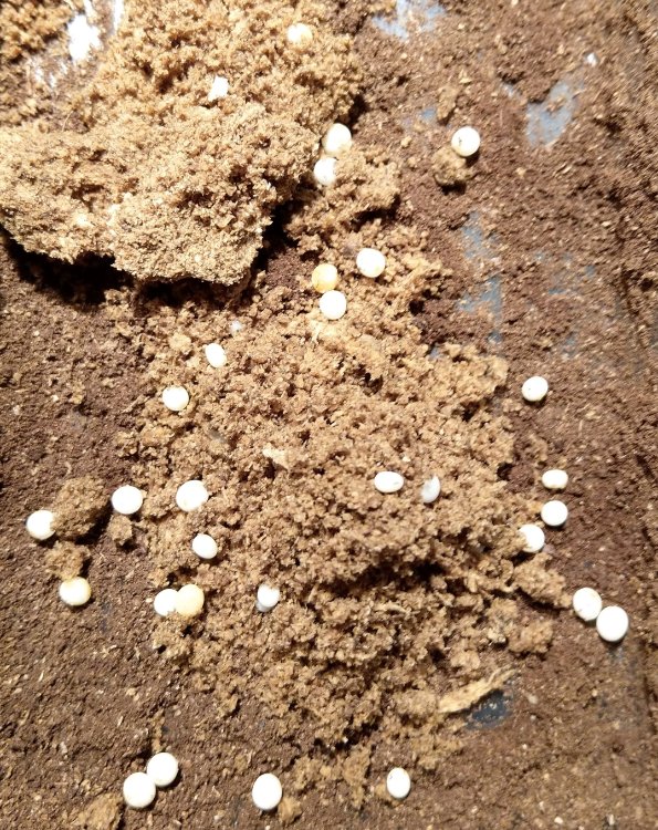 Net m'n bak met neushoornkevers doorgespit en 50 eitjes tegengekomen! Wel grappig, want het substraat waar ze in zitten is puur zaagmeel. Voor het eerst houd ik deze soort (twee paartjes gekocht in Antwerpen bij Niki, een mannetje inmiddels overleden), maar blijkbaar gaan de vrouwtjes helemaal los. Ook een zevental larfjes tegengekomen. Gaat goed zo.