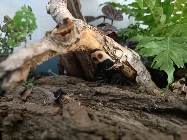 Nog een update: de eerste kever komt nu af en toe onder de grond vandaan (het is een vrouwtje). Ook zitten er weer 20 larven in die het hopelijk goed gaan doen.