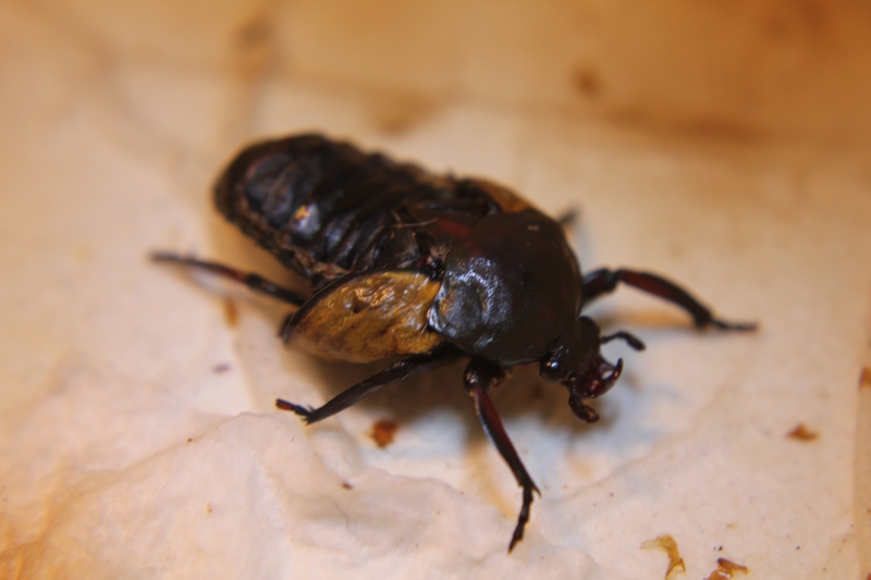 wat moet ik met deze kever doen? hij is al een maand zo en had eerst al een surrogaatcocon omdat zijn cocon verbruizeld was. het ging allemaal goed maar nadat ie uit zijn pophuid kwam bleef hij zo en klapte zijn dekschilden niet goed. hij heeft altijd vochtig gezeten, maar ik denk dat ik hem toch in moet vriezen. het is een eudicella smithi bertherandi en heeft voedsel tot zijn beschikking.