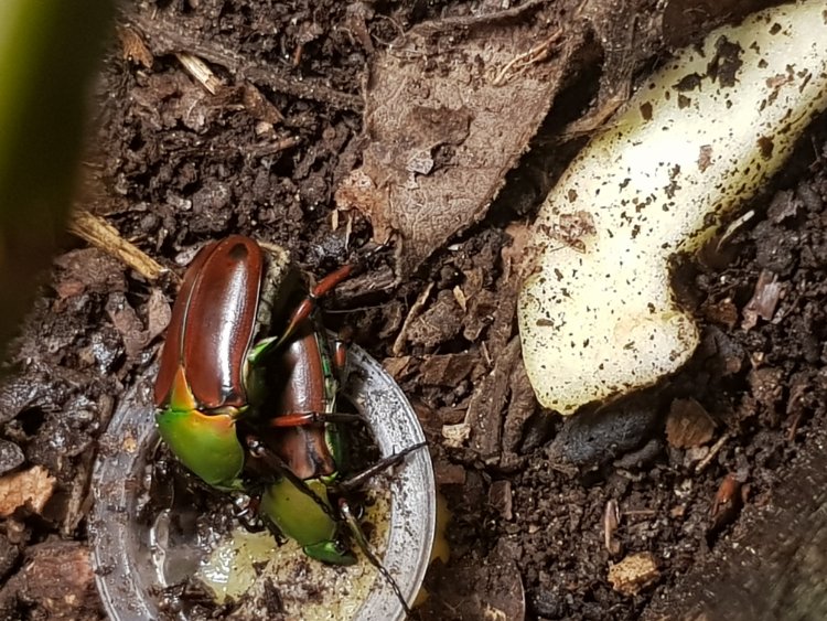 Nee geen eudicella. Als ik er 1 tegenkom dan maak ik een foto. Het zijn echt dikke griezels en zwaar. Van de zomer mijn bak leeghalen en de soorten allemaal een eigen bak geven.