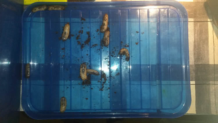 Larven en dergelijke gaan lekker .. beetje knabbelen aan het hout en verder lijken ze zich goed te vermaken.