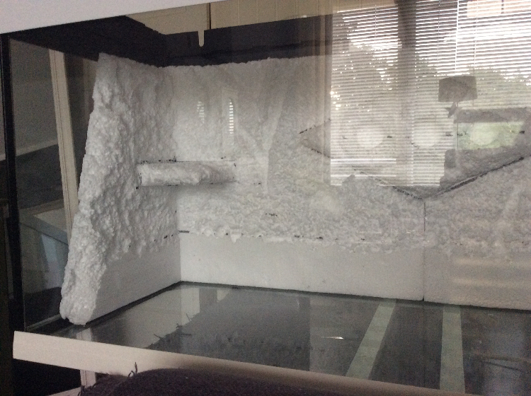Goede tip van die schuil gaten in de wand! Volgens mij gebruikt pim er soort parketlak om mee af te werken en om het zand mee in te hechten. Ben wel benieuwd wat het eind resultaat gaat worden. Zit nu toch sterk te twijfelen om in m'n grote terrarium zo'n achterwand en een klein stukje zijwand te maken... Jullie creaties werken erg aanstekelijk!
