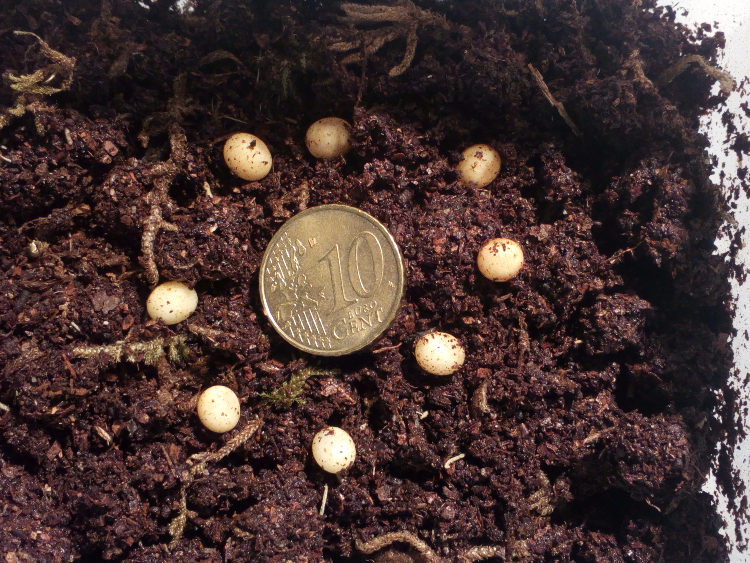 Vandaag weer een terrarium uitgeplozen en eitjes ontdekt. Best wel groot zijn ze. Tevens ook larven gevonden.