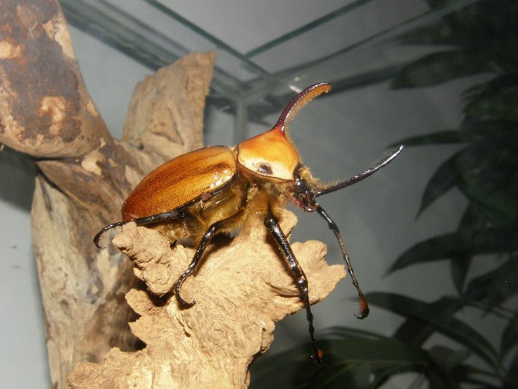 Eindelijk weer wat positievere geluiden uit mijn kweek. Verschillende soorten komen uit de pop en/of lijken zich weer goed te ontwikkelen, na maandenlange teloorgang van diverse kweekjes. Onder de goednieuwsberichten bevinden zich ook de beesten op bijgevoegde foto's. Golofa porteri, waarvan ik nog één paartje heb lopen. Ik hoop op meer nakweek dan de 7 larven die ik bij mijn andere exemplaren vandaan heb weten te toveren. Het mannetje meet een respectabele (bijna) 8,5 cm!! Geen record, maar ik ben zeer tevreden over dit beestje. Nu hopen dat dit laatste paartje voor denderend veel nakweek gaat zorgen!