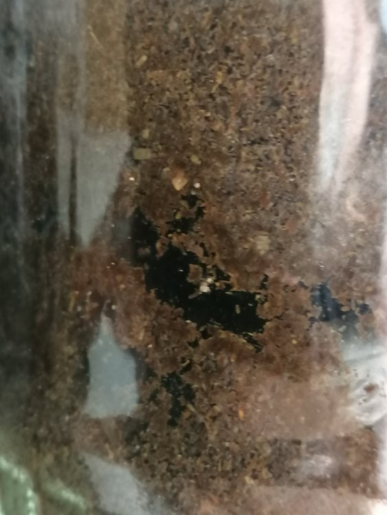 Vanmorgen nog even gekeken, het lijkt wel of ze een cocon aan het bouwen is.