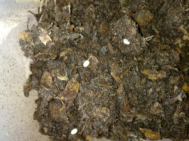 hierdoor lijkt het alsof er enkel klontjes substraat in de bak zitten maar hier kunnen ook eitjes in zitten.