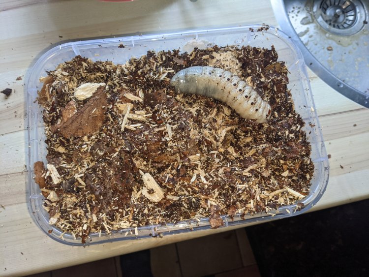 Mijn substraat is 1:1 blad en witrot hout. Onderin de bakken heb ik nog wat substraat gelegd van waar ze vandaan komen (voornamelijk hout). De aparte mannen gaan tzt naar een grotere bak voor het verpoppen.
