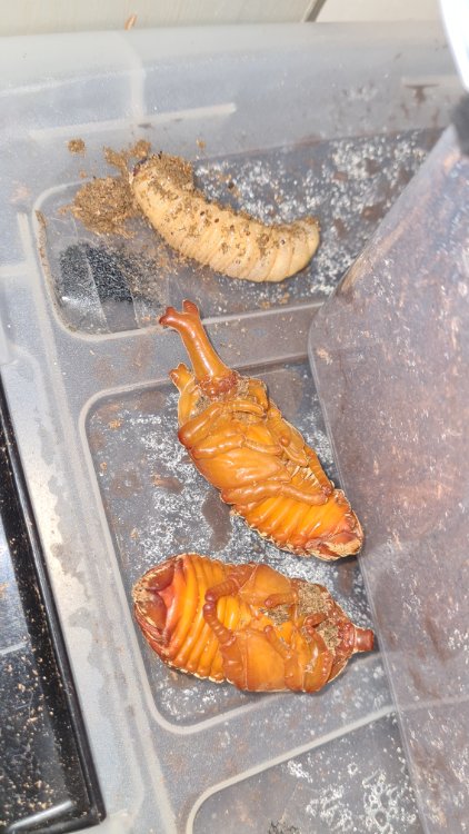 Verder van mijn vorige 2 dhh vrouwen zon 70 larven gekregen, erg blij! Nu allemaal rond de 5 gram. Ook zijn de tryp dichotomus verpopt. Kweek met zelfgemaakte flakesoil en ben met wat recepten bezig. Larven groeien er heel goed op!